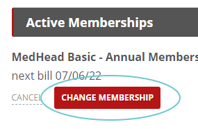 2. On the dashboard of your account area you will see a Change Membership button under your active memberships. Click that button.